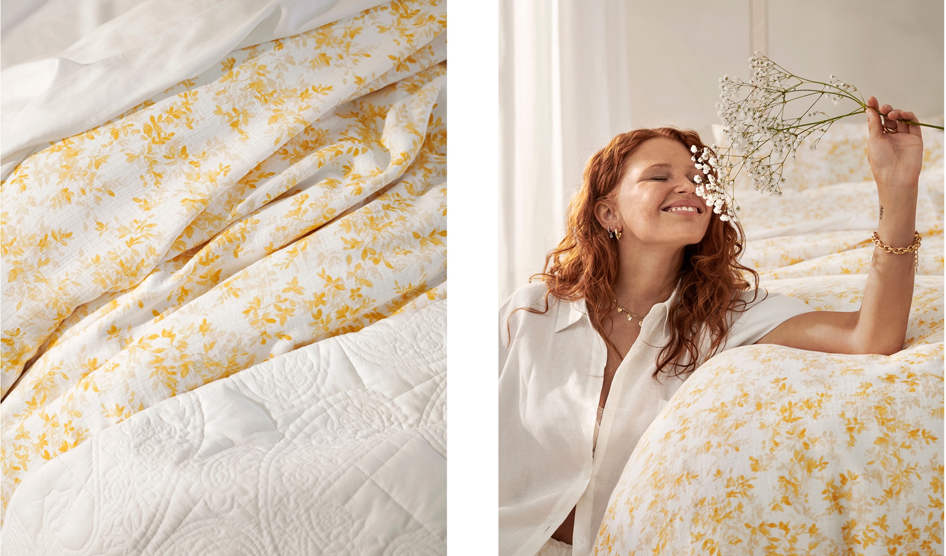With Naves, you won’t have to dream of summer — it’ll come to you. Crafted from 100% organic cotton, it feels like your favourite, sheer floaty summer outfit, and is reminiscent of the soft dappled light that filters through the trees. In optimistic shades of yellow (something we all need after the year we’ve had), you can bask in its warm, sunny colours. The softly textured design with a unique washed finish, features a small scale foliage print in a saturated colour palette, bringing sun-drenched days into your bedroom year-round.