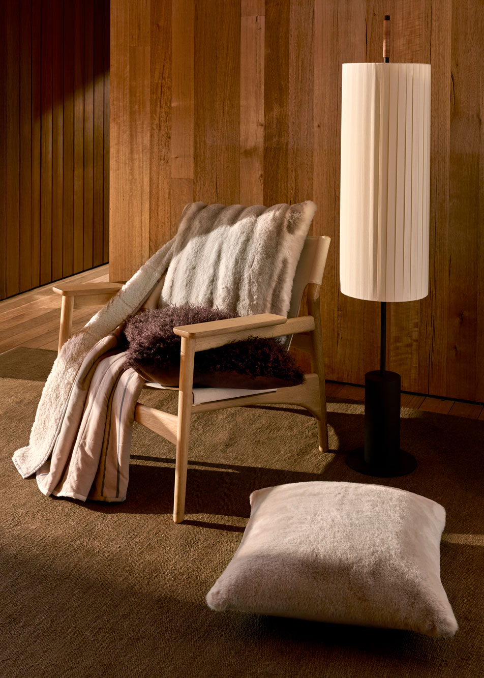 When it comes to cosy, it’s all about the feels. Textures are exaggerated and layered; think faux fur and brushed cotton — and plenty of it. Wearables among the likes of quilted bathrobes and silk eye masks work their way into daily wind downs.