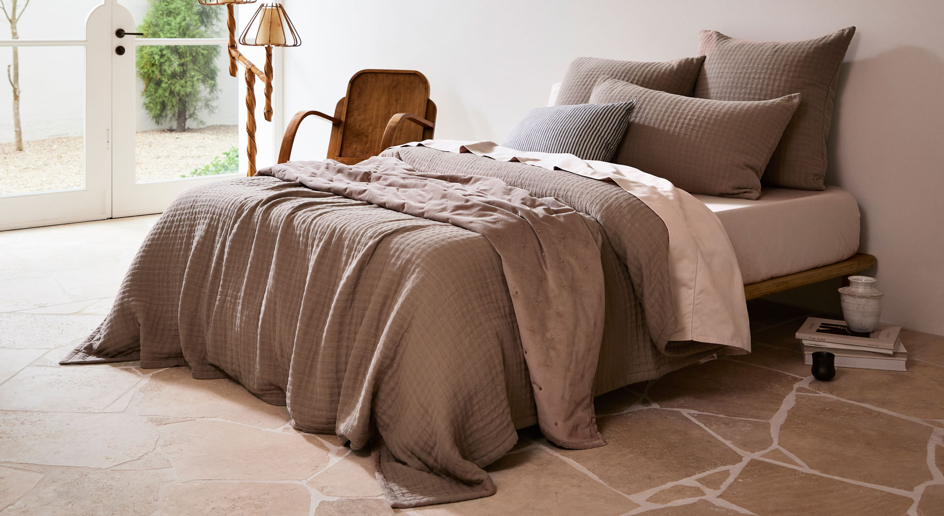 Transform your bedroom into a cosy sanctuary by embracing the warm and soothing appeal of earth tones. Fiona Gould, our interior stylist for Sheridan, shows us how to showcase her favourite colour palette of the season. Combining shades of mocha brown with delicate rose pink, Fiona shares everything you need to know about creating a bedding ensemble that promises a serene escape within your own home.