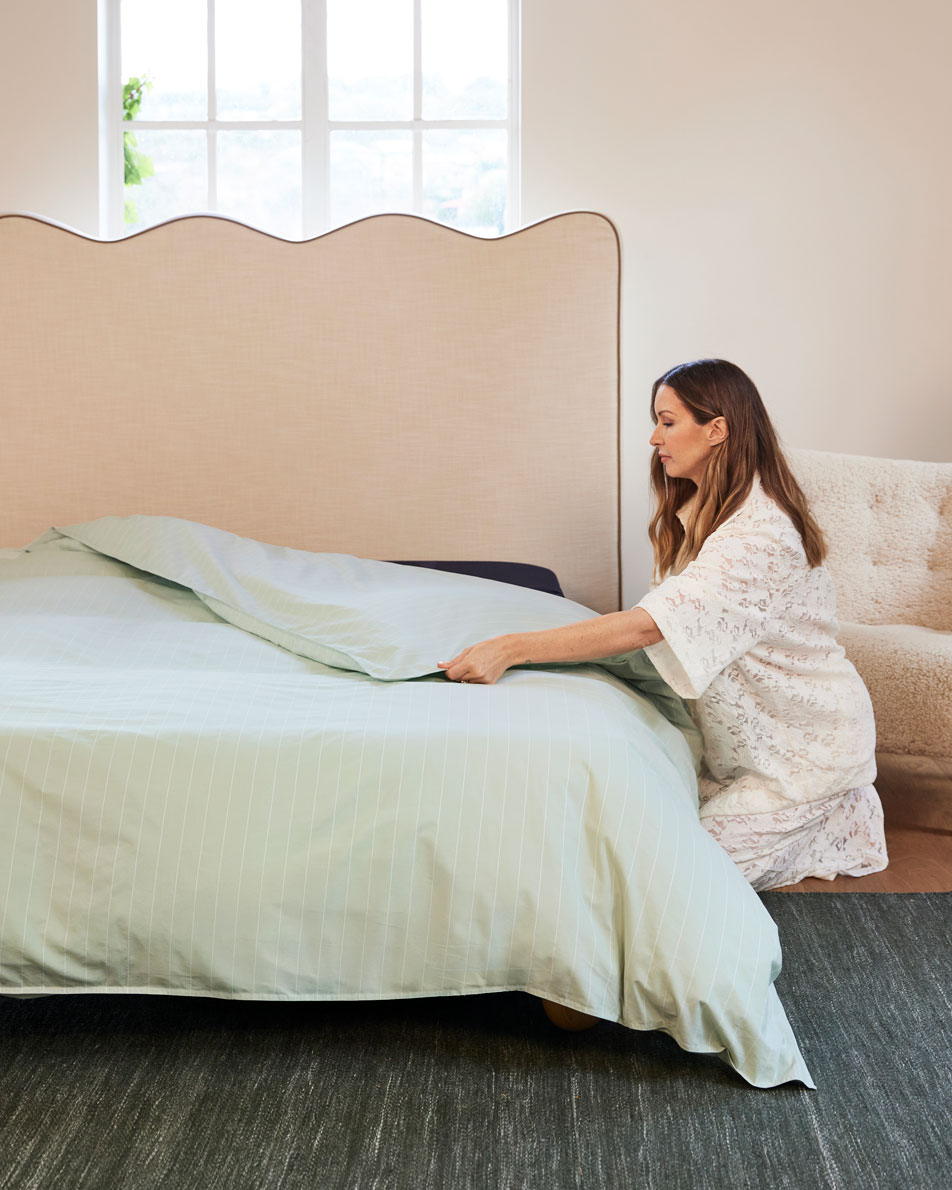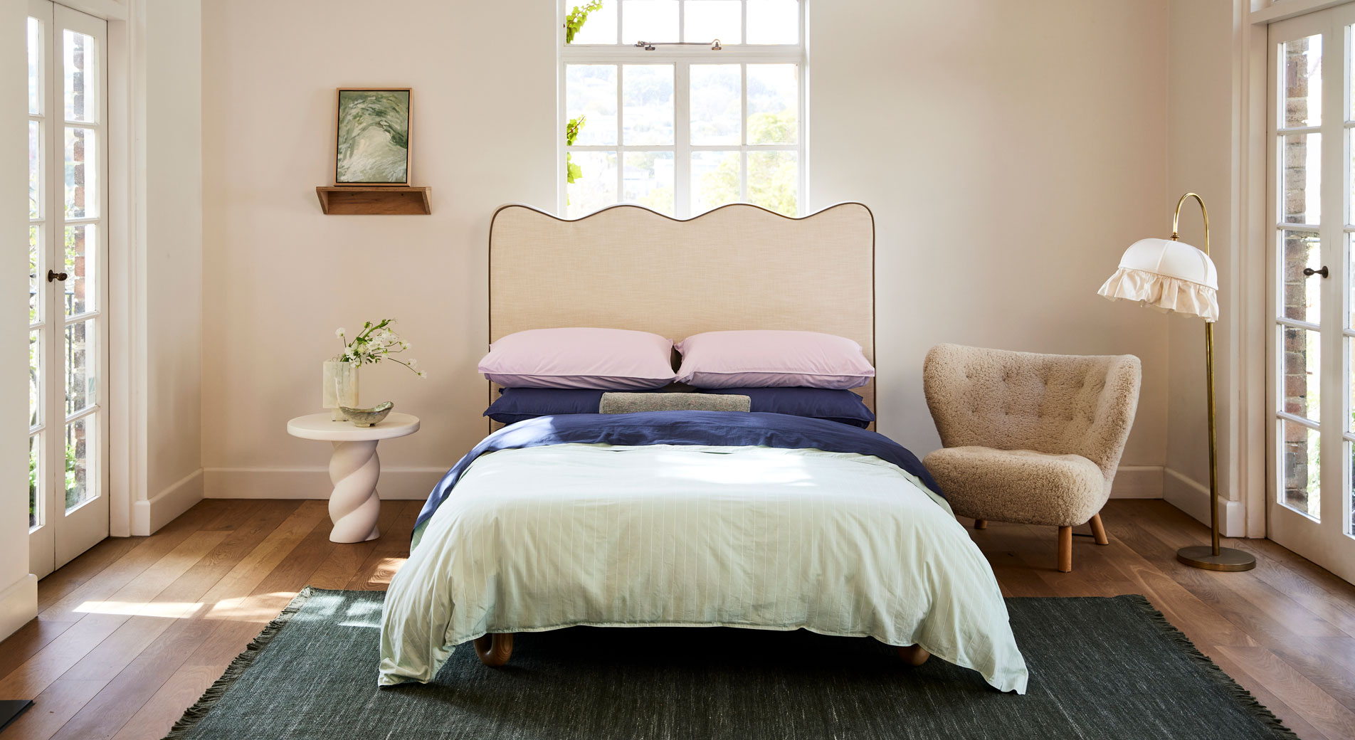 A simple place to start? Your colour choices. Taking inspiration from our Bayley Washed Percale collection, we asked interior stylist Kerrie-Ann Jones to share some tips on styling an expressive bedroom look. The result? An unexpected colour combination that's equal parts playful and refined. If you’re curious about how to create your own bedroom colour palette that just feels like you — keep reading.